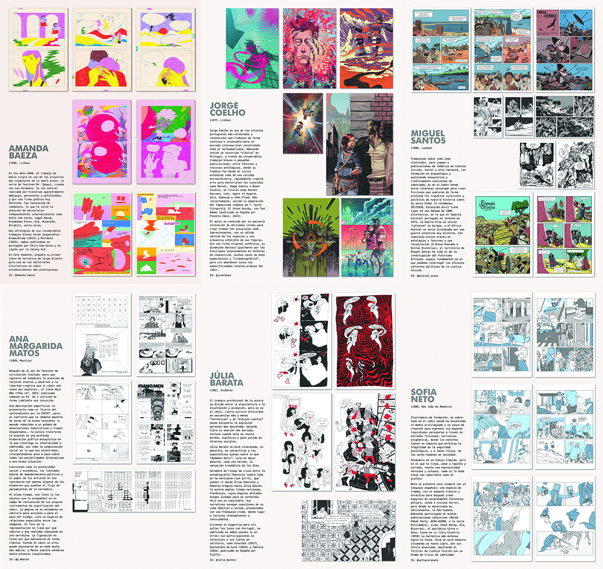 La versión presente tiene la función añadida de “Embajada” itinerante por España, comenzando en el Hispacómic de Sevilla, coorganizador, mostrando a algunos de los autores de esas exposiciones, entre veteranos y jóvenes artistas, ora más adeptos de lenguajes clásicos ora más experimentales, algunos publicando en editoriales de gran circulación, otros en circuitos más alternativos de la small press, ya sea nacional o internacional, incluida España. En un panorama marcado por la diversidad de formatos —del libro al fanzine, de lo digital al objeto gráfico— el cómic portugués revela una fuerza autoral singular, hecha de elecciones individuales, métodos propios, caminos inesperados, una magnífica variedad de voces tan propias e individualizadas, en términos de grafismo, narrativa, gesto y ánimo. Flexágono se propone ampliar esa atención, invitando al público a atravesar fronteras, a descubrir constelaciones de papel y a reconocer, en la narrativa visual, un acto vivo de pensamiento.